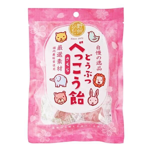 おなじみどうぶつべっこう飴シリーズにさくらが仲間入りしました!可愛い動物たちと一緒にさくらの香りを楽しもう!国内産桜葉を使用した、ほのかに桜が香るべっこう飴です。