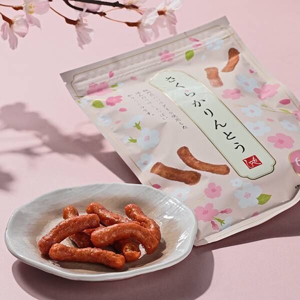 サクサク食感の生地に桜の花パウダーを炊き込んだほんのり甘塩っぱい蜜をからめたかりんとうです。