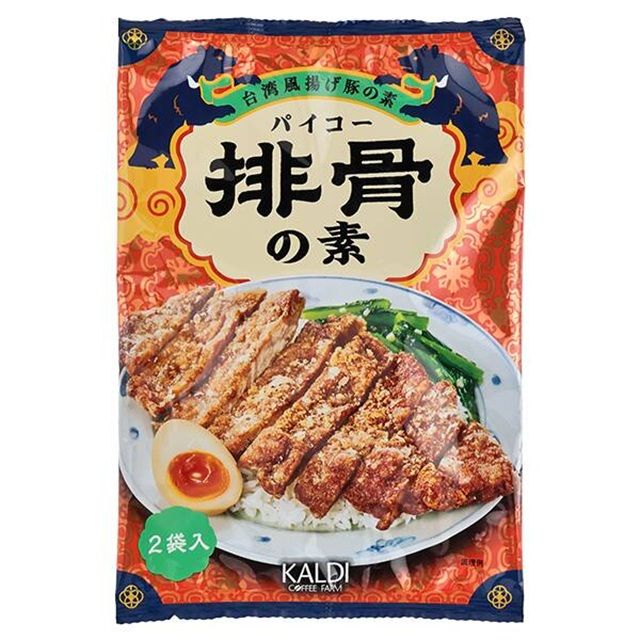 排骨(パイコー)は、駅弁や飲食店、家庭で人気メニューの台湾のソウルフードです。豚肉をたたいてやや薄くし、たれに30分以上漬け、片栗粉をまぶして油で揚げます。シナモン、クローブ、花椒、にんにく、胡椒、八角、フェンネルと、7種類のスパイスで仕上げました。香辛料が効いていますが、辛味はなく食べやすいのが特徴です。