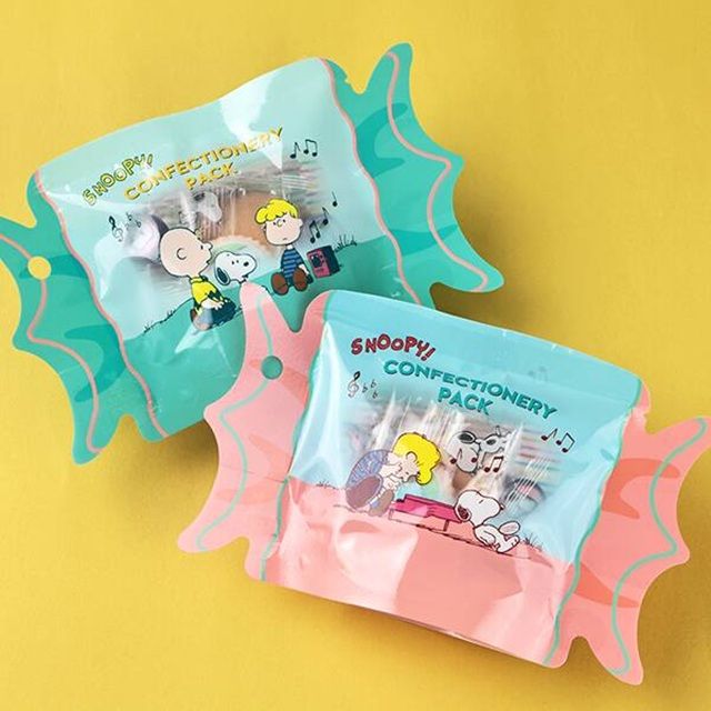 スヌーピー型の焼菓子とキャンディが入った、手のひらサイズの詰め合わせパックです。パッケージは2種類!