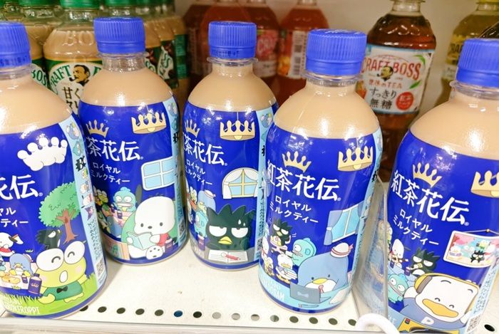 セブンなどのコンビニで目撃が多くなっています!表面は普通の紅茶花伝で、裏面がサンリオキャラクターのデザインになっています!
