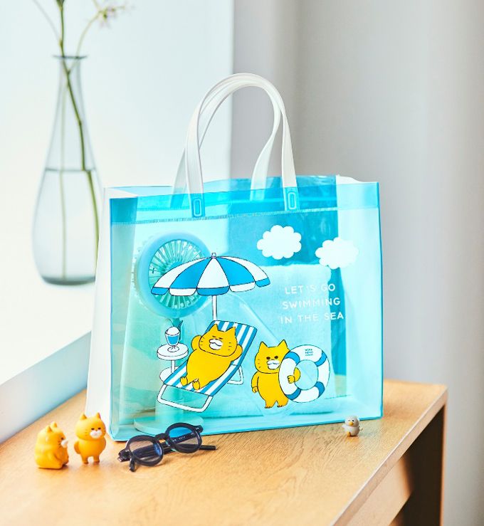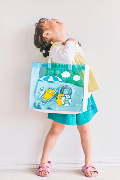 大人気のプールBAGが2年ぶりに登場。イラストは工藤ノリコさん描きおろしで、大人も使いたくなるデザイン! 約タテ28×ヨコ34×マチ10cmのBIGサイズだから、海やプールでの水遊びはもちろん、おもちゃや絵本などの収納BAG、公園のお砂場BAGとしてもぴったり。オフィス用にも使えてとっても便利。
