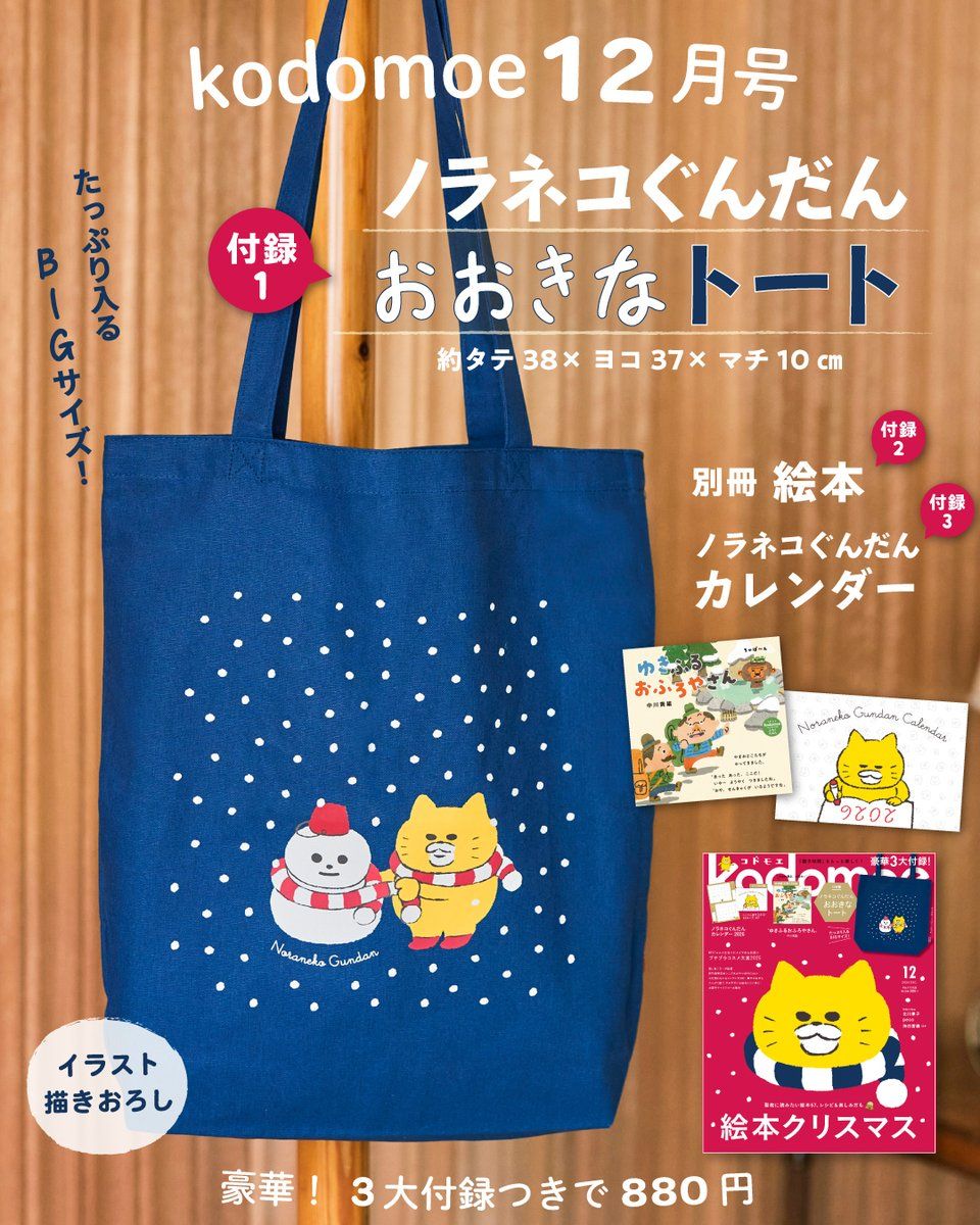 11月4日発売の kodomoe12⽉号の付録は、「ノラネコぐんだんおおきなトートバッグ」が登場します!