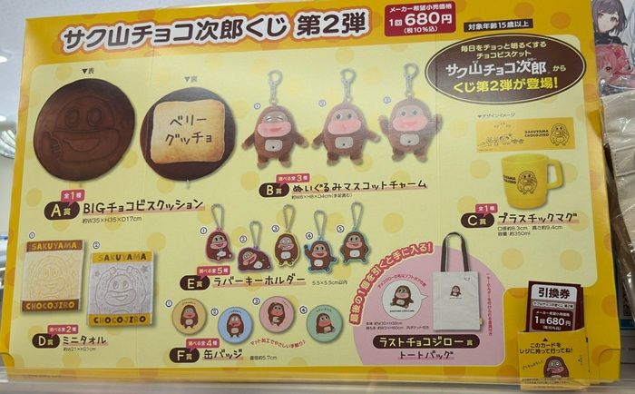 ハズレなしのくじより、『サク山チョコ次郎』シリーズが販売しています!限定の景品などで毎回大人気!