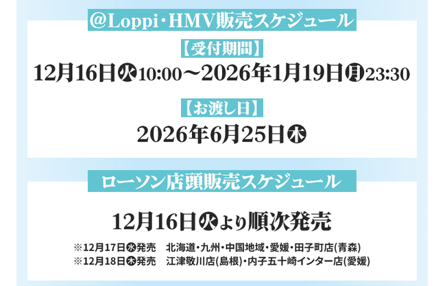 | 発売日 | ローソン店頭販売スケジュール 2025年12月16日(火) 地域によって発売日が異なります |
