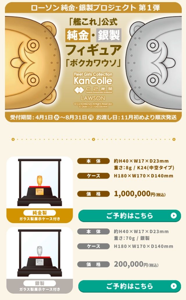 • 「艦これ」公式 純金・銀製フィギュア 「ボクカワウソ」 を販売