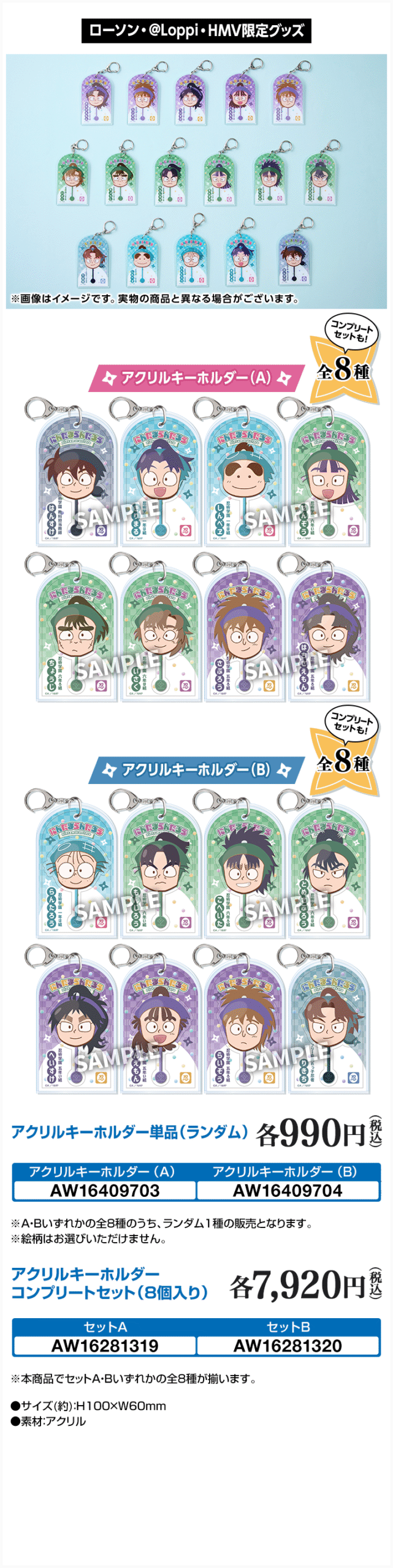 ランダムアクリルキーホルダー A:全8種類/B:全8種類 各990円(税込み)