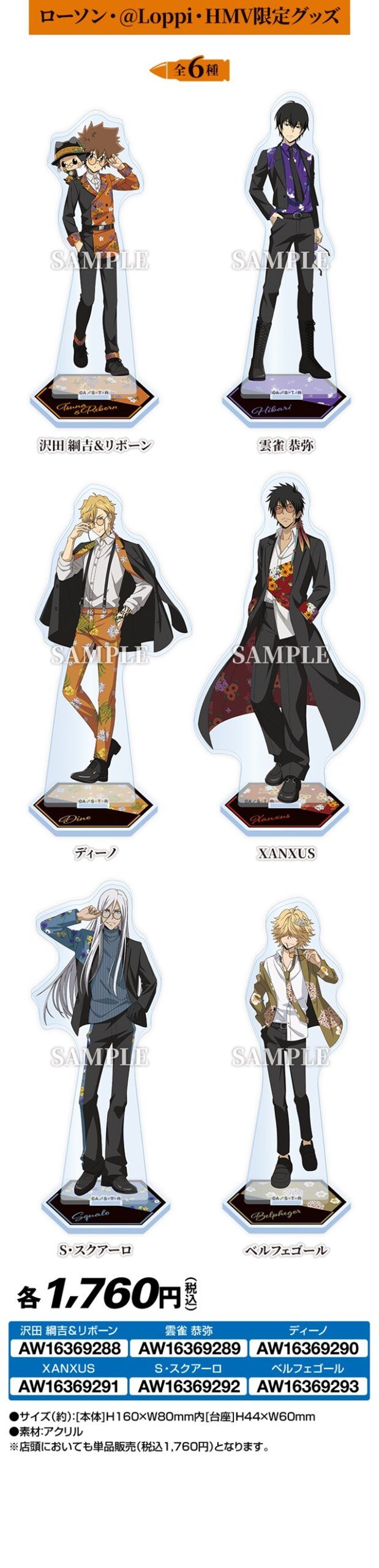 アクリルスタンド 全6種類 1760円(税込み)