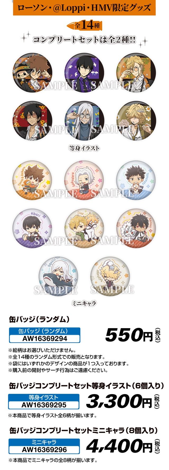 缶バッジ 全14種類(ランダム) 550円(税込み)