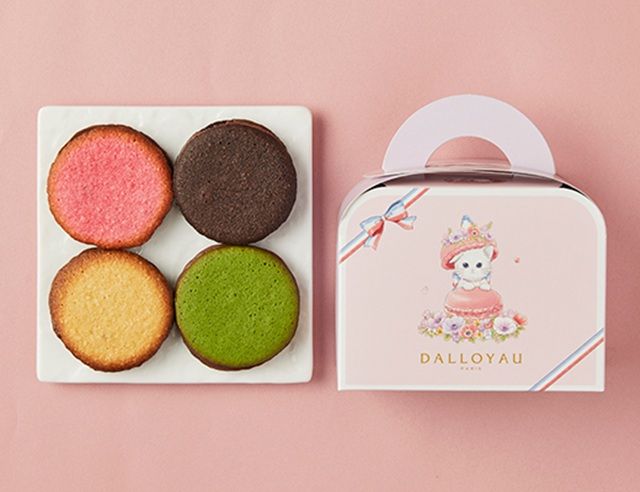 とろ〜り柔らかいキャラメルソースをチョコレートで包み、サクサクのクッキーでサンド。プレーン、苺、抹茶、ショコラの4種の味わい。贈りやすい手提げ箱入りのプチギフト。