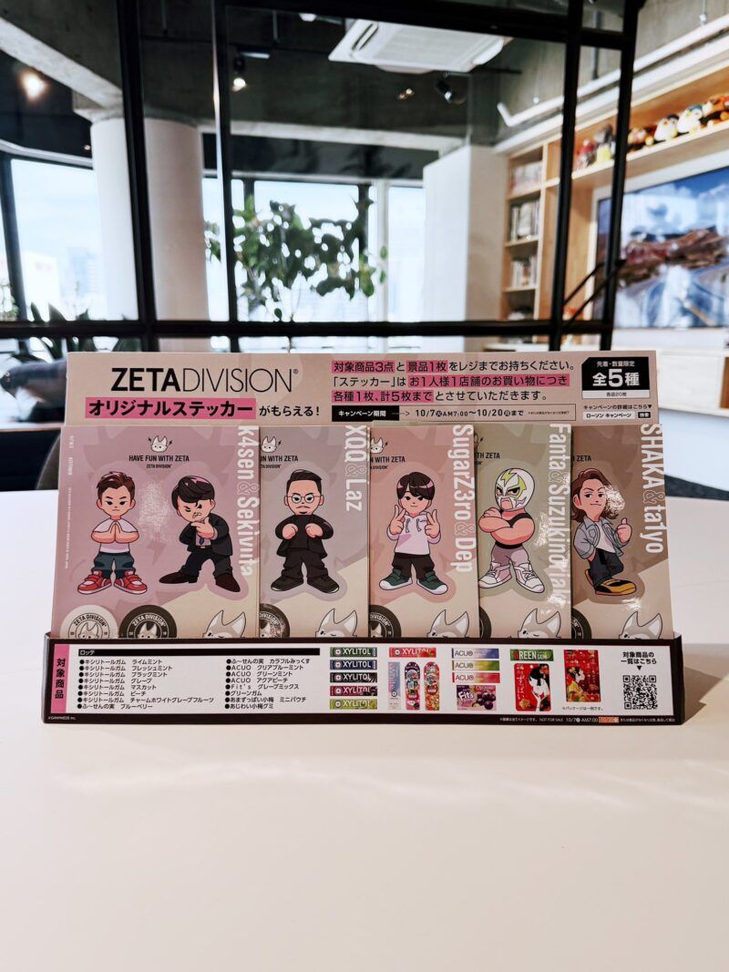 ローソンでは、プロeスポーツチーム『ZETA DIVISION』とコラボレーションのキャンペーンを開催します!対象商品を購入するとオリジナルステッカーのおまけがもらえます!
