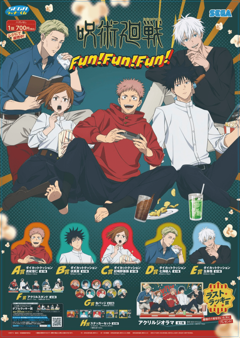 2025年12月より『セガ ラッキーくじ「呪術廻戦 Fun!Fun!Fun!」』を販売します!みんなで集まって遊んでいるかのような、日常のひとコマをイメージした新規描きおろしイラストを使用しています!
