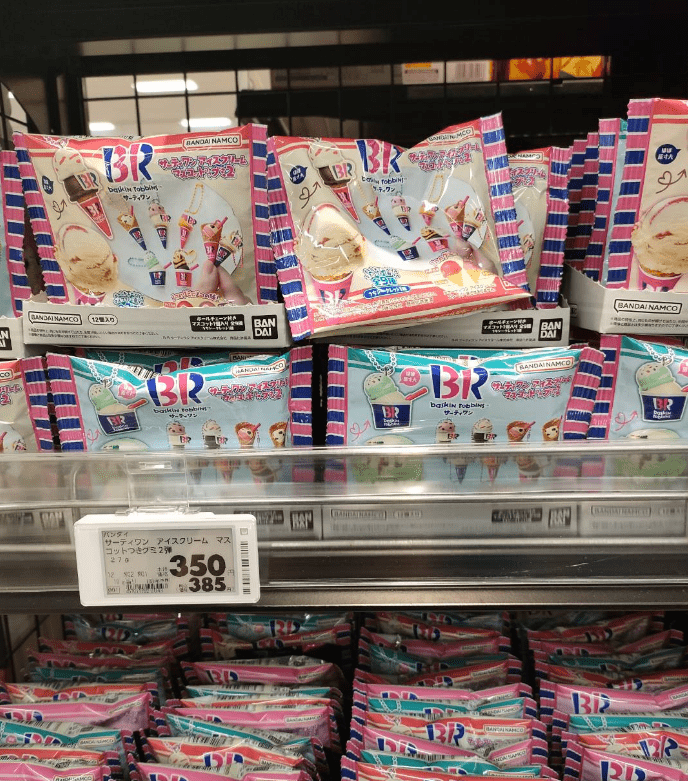 サーティワン アイスクリームのミニチュアがボールチェーン付きマスコットになってお菓子売り場に再登場!
