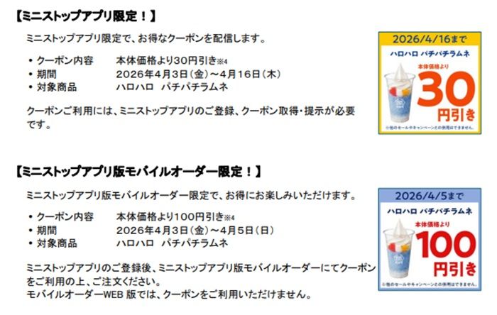 クーポンご利用には、ミニストップアプリのご登録、クーポン取得・提示が必要です。