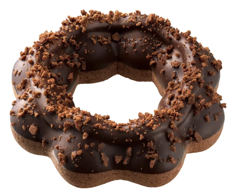 もちもち食感のショコラ生地にチョコレートをコーティングし、ザクザクのチョコクランチを全体にトッピング。