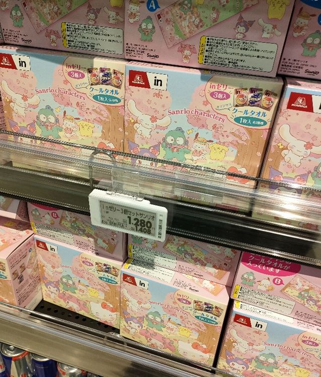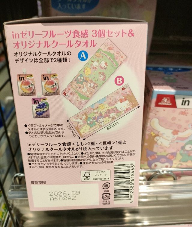 サンリオのクールタオル付「inゼリー 3個セット」 価格 1,408円(税込み)