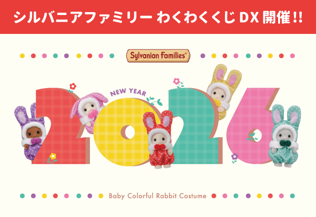 シルバニアファミリーくじDXに「赤ちゃんカラフルウサギコスチューム」と「どきどきコレクション -ミルキーウェイ-」が2026年1月1日(初売り)より新発売!