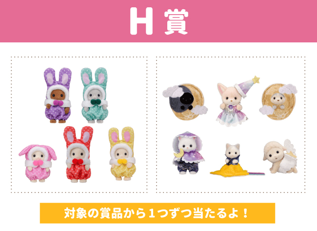 H賞は、「赤ちゃんカラフルウサギコスチューム」と「どきどきコレクション -ミルキーウェイ-」