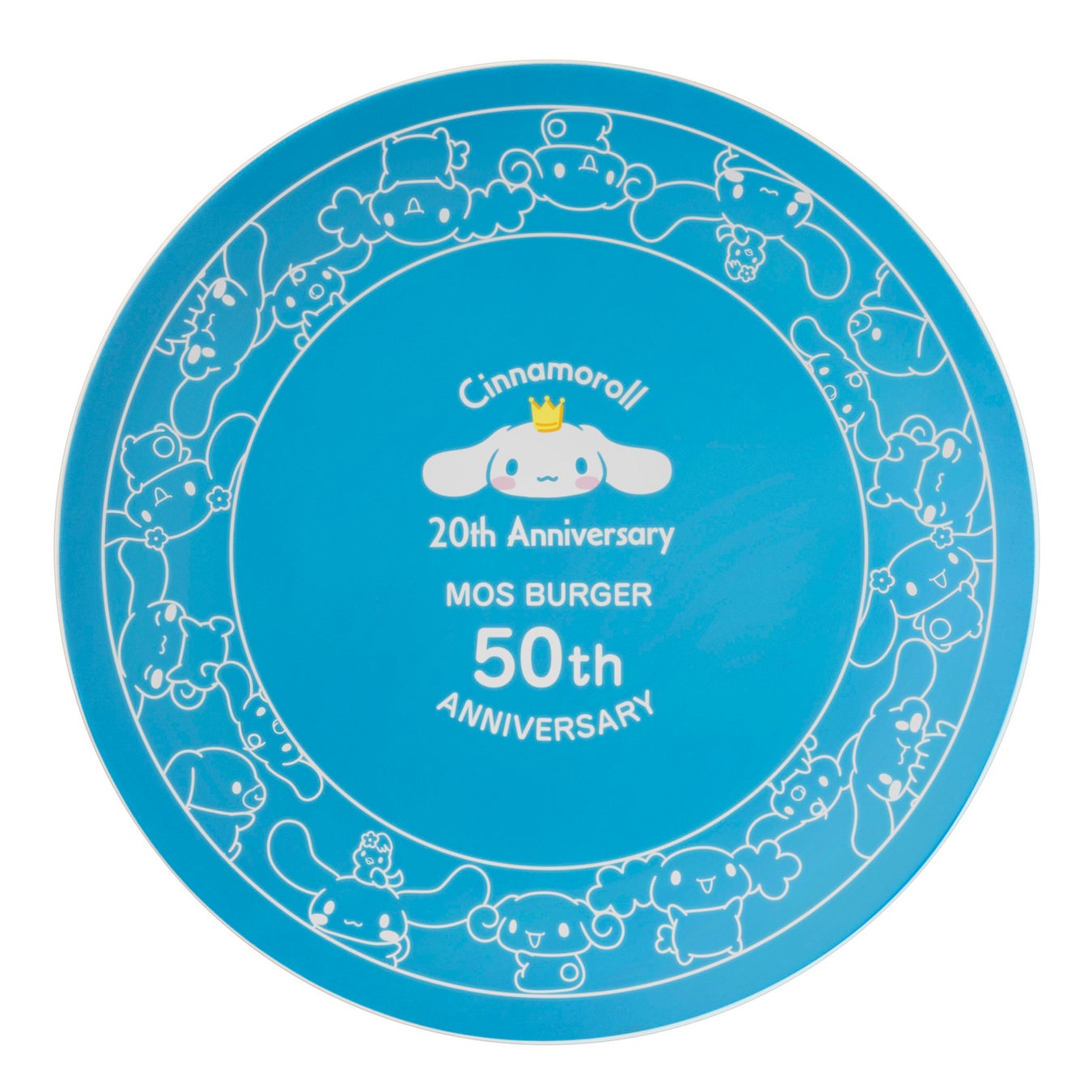 オリジナルプレートは2種類あり、どちらか1つが付いてきます。デザインはシナモンがモスチーズバーガーを持っているものと、モスの50周年とシナモロールの20周年を記念したものがラインナップ!