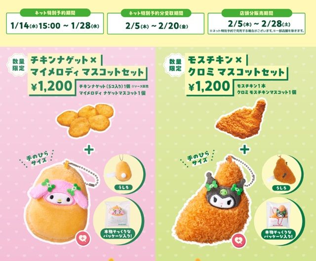 マイメロディとクロミのマスコットセットが、それぞれ数量限定でモスのネットで予約販売します!