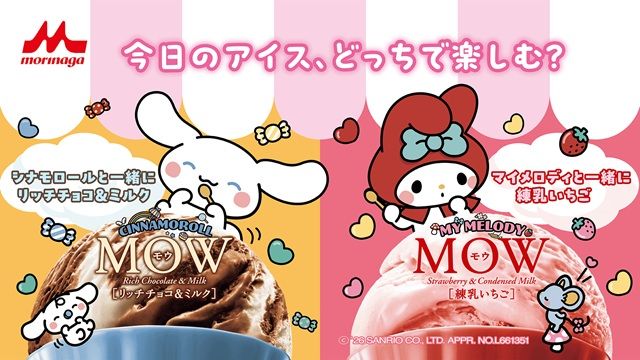 ミルクのコクと素材の味わいを活かしたデイリープレミアムアイスの、森永乳業のアイスクリーム「MOW(モウ)」に、シナモロール・マイメロディのコラボパッケージが登場します!全国の量販店、コンビニエンスストアなどで、1月12日(月・祝)から順次発売!