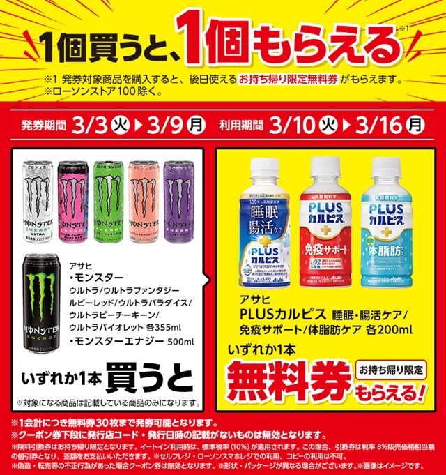 - 【ローソン】『1個買うと1個無料』キャンペーン!【2025年11月4日(火)】の週
