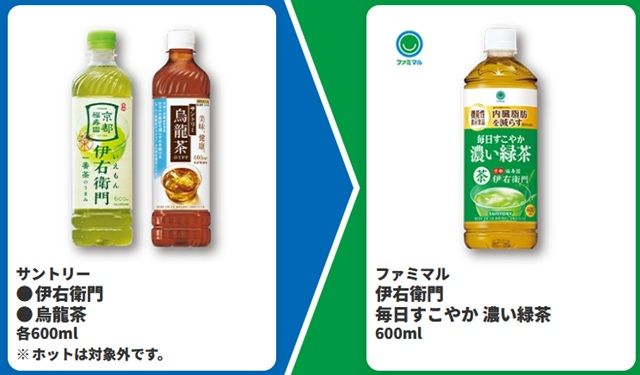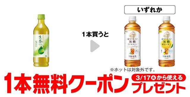 | 伊藤園 お~いお茶 濃い茶、緑茶 各600ml | 伊藤園 お~いお茶 濃い茶 STRONG 470ml、濃く香るほうじ茶 600ml ※ホットは対象外です。 |