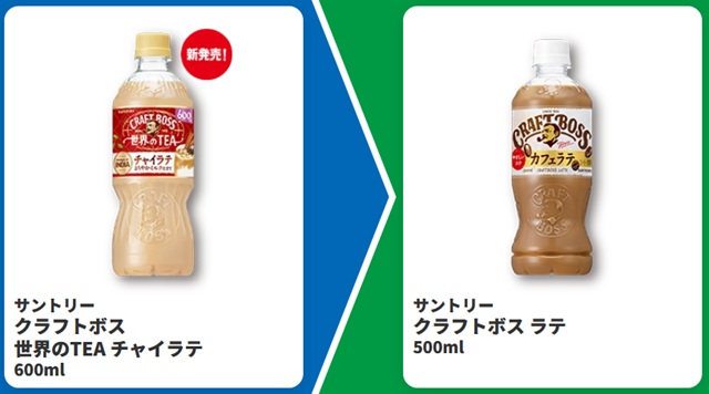 | サントリー クラフトボス ラテ 500ml ※ホットは対象外です。 | ファミマル Family’s BOSS ラテ 450ml |