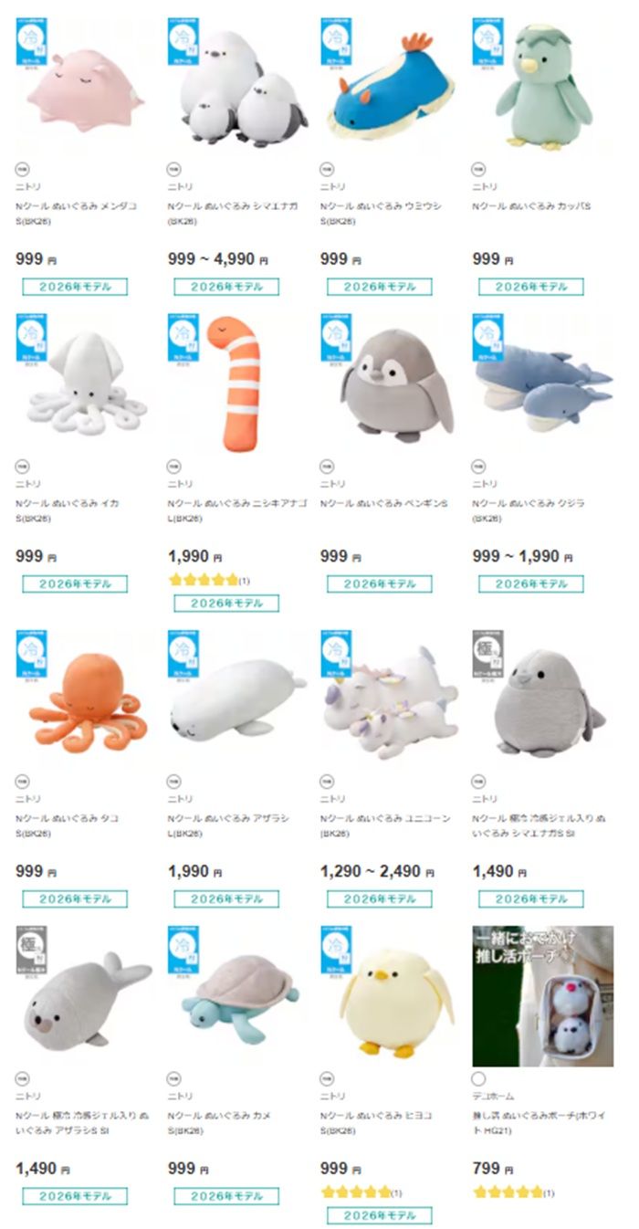 ニトリの人気商品、抱きしめてひんやり♪デコホームオリジナルのキュートな「Nクール ぬいぐるみ」が2026年も種類豊富に販売しています!