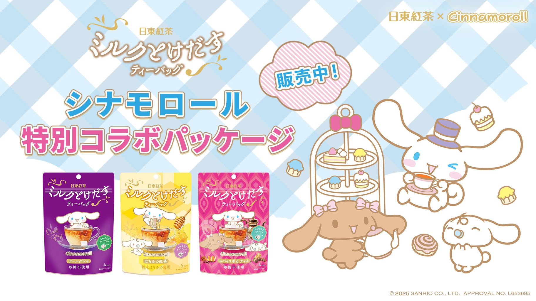 日東紅茶は、サンリオの人気キャラクター「シナモロール」とコラボレーションした「ミルクとけだすティーバッグ アールグレイ」「ミルクとけだすティーバッグ スパイス香るチャイ」「ミルクとけだすティーバッグ はちみつ紅茶」を、1月20日(月)より全国にて数量限定発売します!
