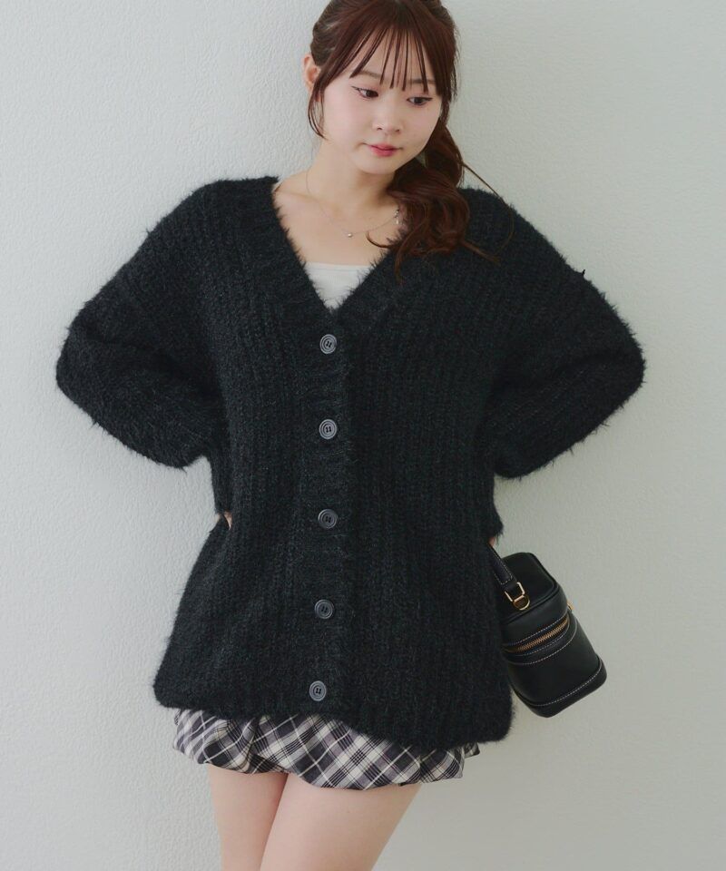 ・1枚で様になる、今年らしいハートボタンが可愛いニットカーデ。
