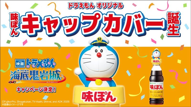 ミツカンは、「味ぽん®」ブランドと「ドラえもん」がコラボレーションしたキャンペーンを2026年春に開催するようです!