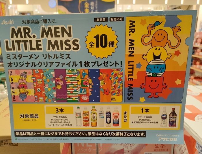アサヒ飲料『ミスターメン リトルミス』コラボ!クリアファイルのおまけがもらえるキャンペーン開催店はどこ?全10種類!2026年春に開催!