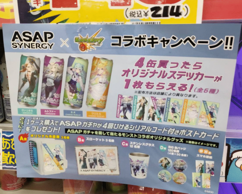 そのほか、次世代飲料「シナジードリンク」【ASAP SYNERGY】とモンスターストライクのコラボも実施しています!