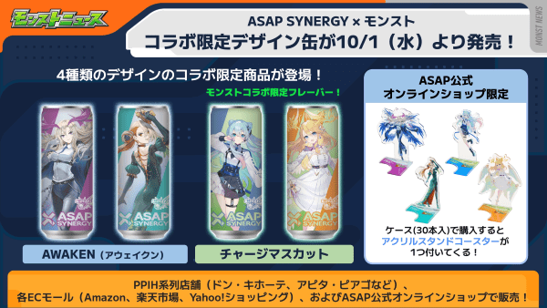 シナジードリンク ASAP SYNERGY × モンスターストライク(モンスト)キャンペーンが2025年10月より開催します!