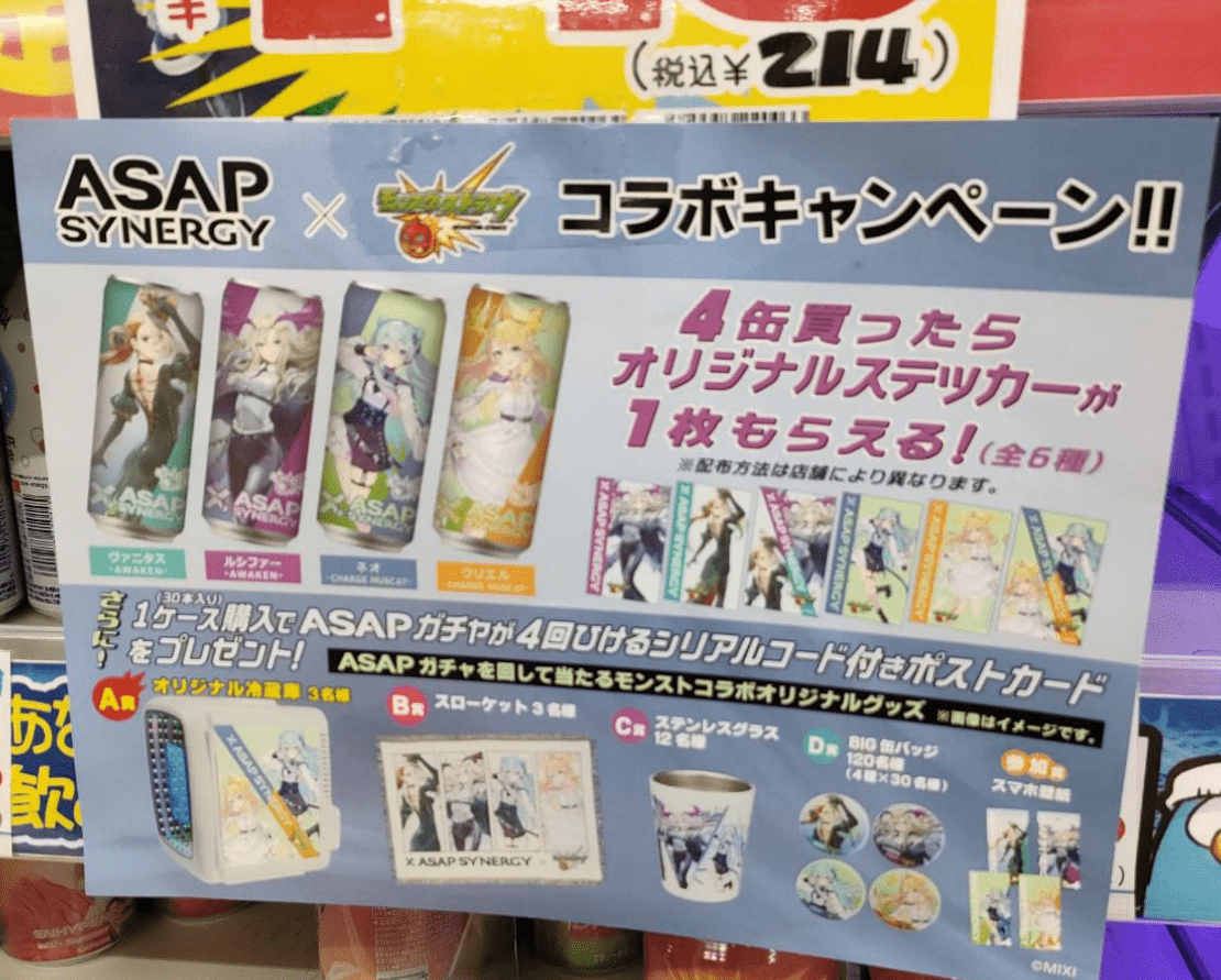 そのほか、次世代飲料「シナジードリンク」【ASAP SYNERGY】とモンスターストライクのコラボも実施しています!