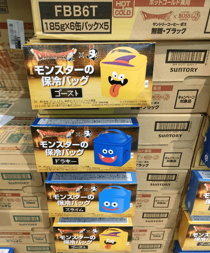 ドラクエBOSS缶コーヒー☕️ケース買いしてきた!保冷バッグは絵柄面積の多さでゴースト👻横におててが描かれてるのもかわいい✋BOSS缶コーヒー4缶が入るよー。 pic.twitter.com/ibk9agCHkH