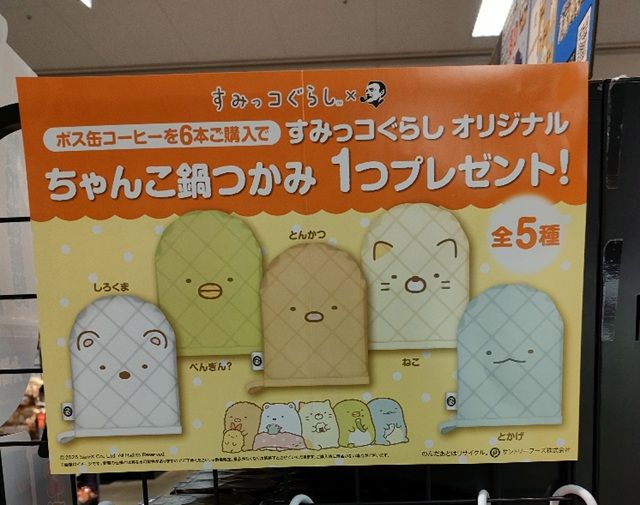 ボス(BOSS)『すみっコぐらし』ちゃんこ鍋つかみのおまけが店頭でもらえるコラボキャンペーンが2026年2月より開催!