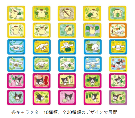 シールのデザインは全30種で、各キャラクターが野菜を持ったデザインです!