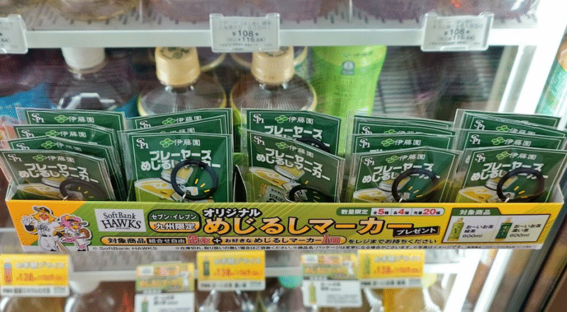 セブンでお〜いお茶買うとホークスのめじるしマーカーが貰えると聞いてさっき急いで行ったのに全然あった笑 pic.twitter.com/G4o27KHP7e