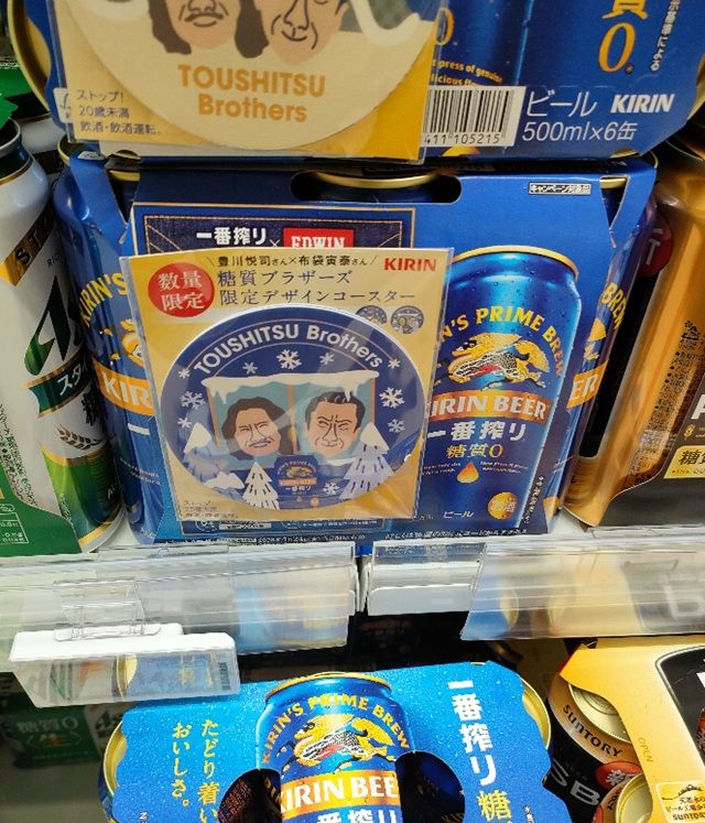 キリンビールの一番搾り糖質0では、販売促進のため2026年3月中旬から『『豊川悦司&布袋寅泰 糖質ブラザーズ限定デザインコースター』付きの商品を販売しています。