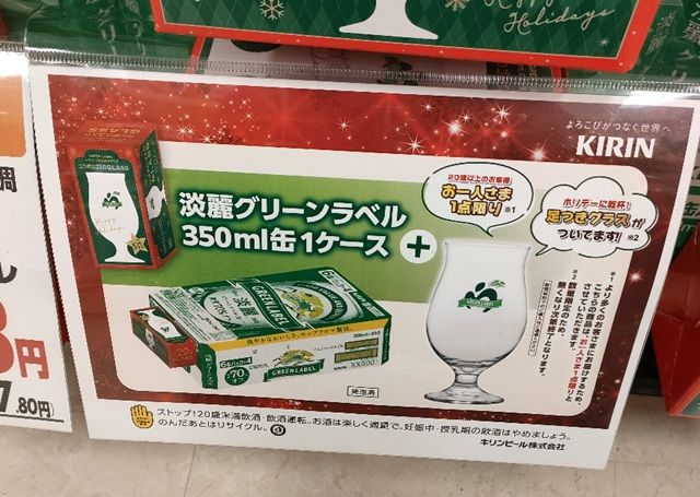 たまたま近所で、ミセスさんとコラボしたグリーンラベルグラスを発見。もう手に入らないかと思ってたので嬉しい。 pic.twitter.com/L3W32aF7WK
