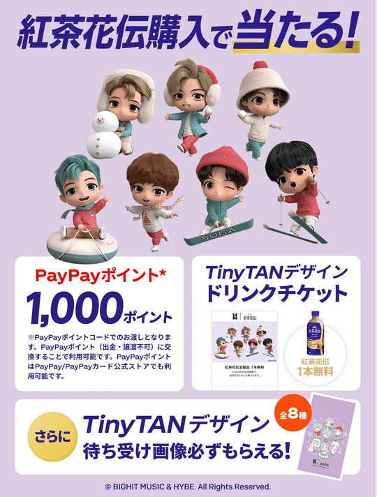 紅茶花伝「TinyTAN(タイニータン)」コラボの抽選でグッズが当たる冬のキャンペーンも2025年10月20日より開催しています!