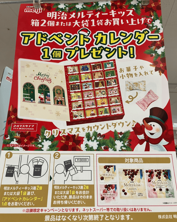 メルティーキッス『クリスマス!アドベントカレンダー』キャンペーン開催期間、内容、実施店舗(場所)などをまとめます!