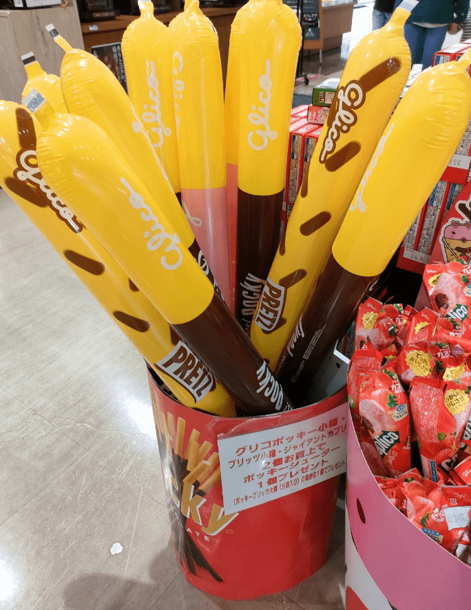 2025年10月27日(月)ころ~「ポッキー&プリッツの日」に伴い、対象のポッキーシリーズ・プリッツシリーズ・ジャイアントカプリコなどどれでも2個同時購入で、先着で「ポッキー風船」がもらえるキャンペーンがスーパーなどで続々実施中♡
