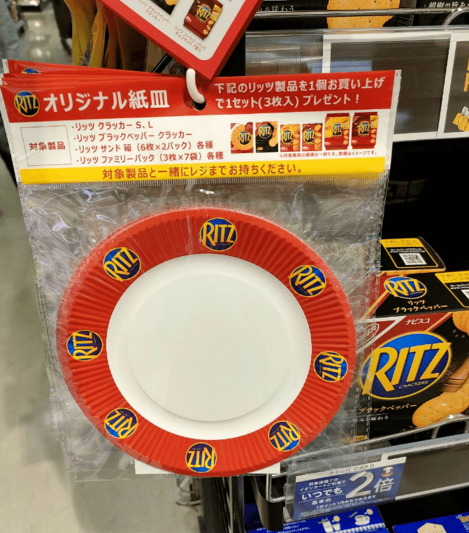リッツ(RITZ)では、2025年11月から対象商品を購入すると、紙皿のおまけがもらえる販売促進キャンペーンを開催しています。