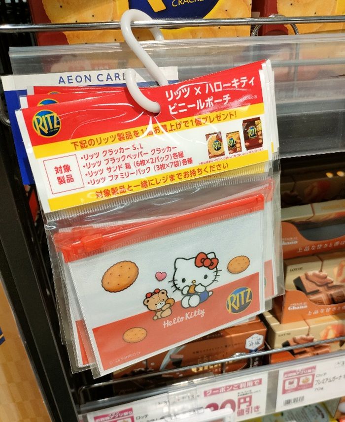 販売促進で、対象商品を購入すると『リッツ×ハローキティ ビニールポーチ』おまけがもらえます!