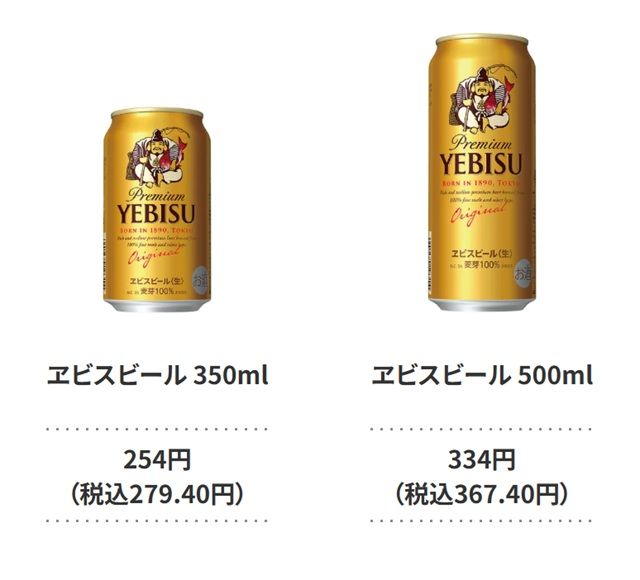 • ヱビスビール 500ml 334円(税込367.40円)