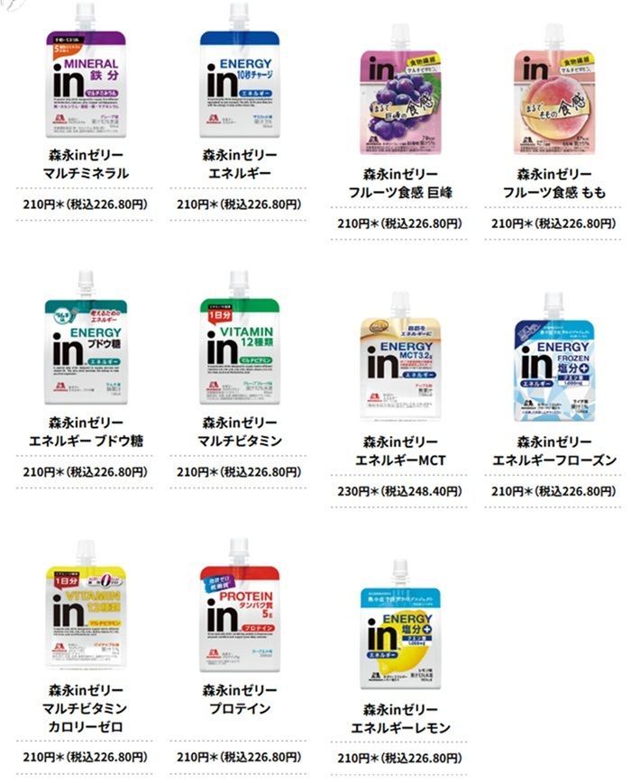 - 森永inゼリー エネルギー 210円*(税込226.80円)