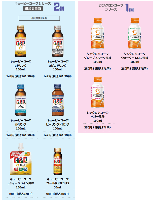 ≪対象商品≫キューピーコーワシリーズ、またはシンクロンコーワシリーズ